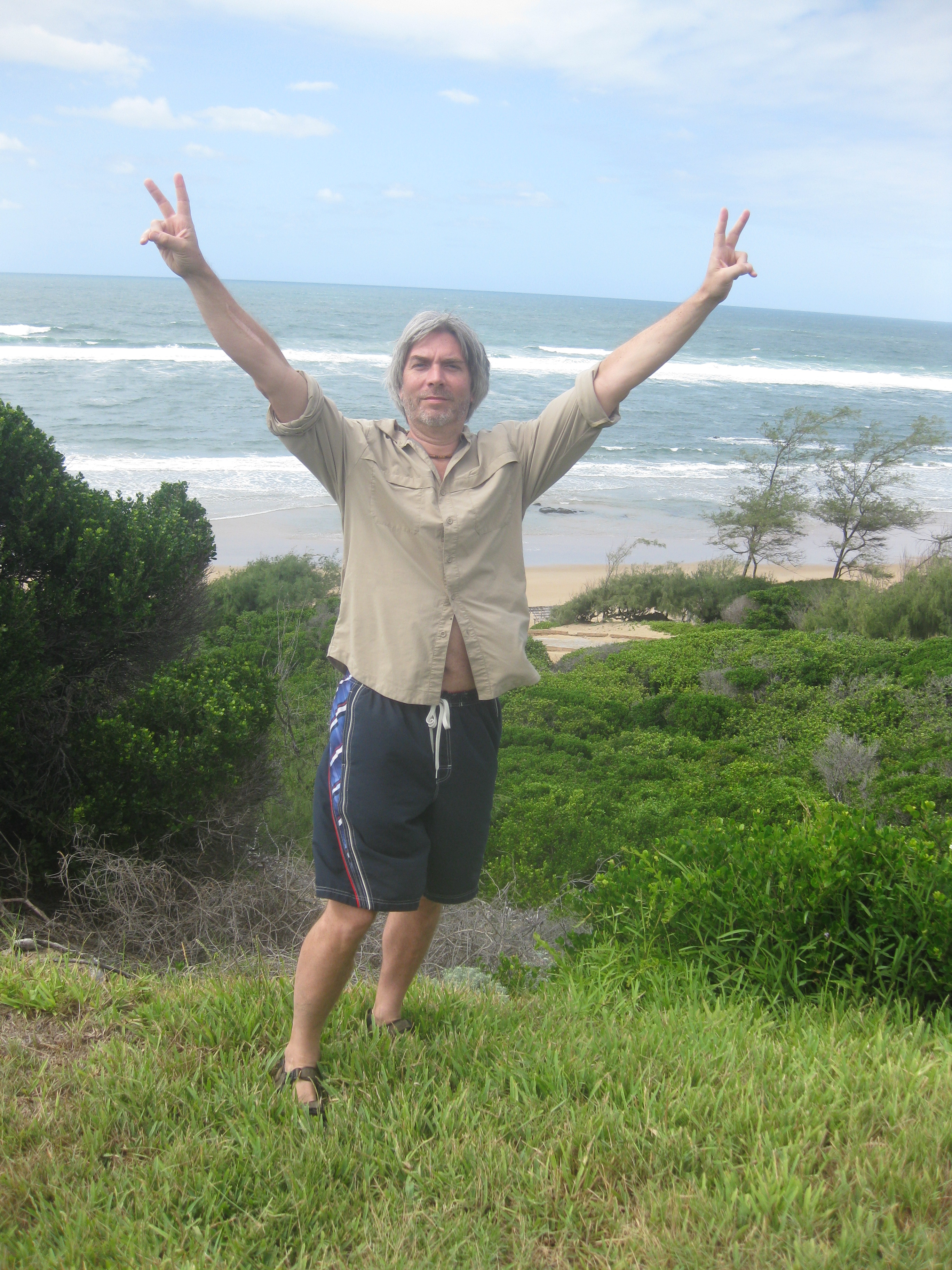 Minutes later we pulled up to an oceanside hotel, up high on a dune, overlooking the magnificent Indian Ocean. Breathtaking. I could hear the waves breaking in the background. It was a spectacular moment. 047We hurried down to the beach, and quickly I was in the water, minding the rocks, rip tides, and marine life. I even managed to body surf a couple of really good waves. And not a soul in sight, except for Helder. Magic.053